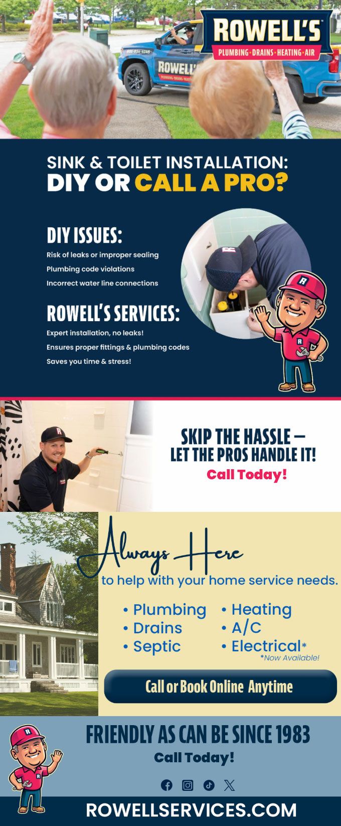 "Friendly As Can Be Since 1983!" When you need help with your plumbing, drains, heating, cooling or electrical in Danbury, you can always rely on Rowell's Services! Call us now or book online!